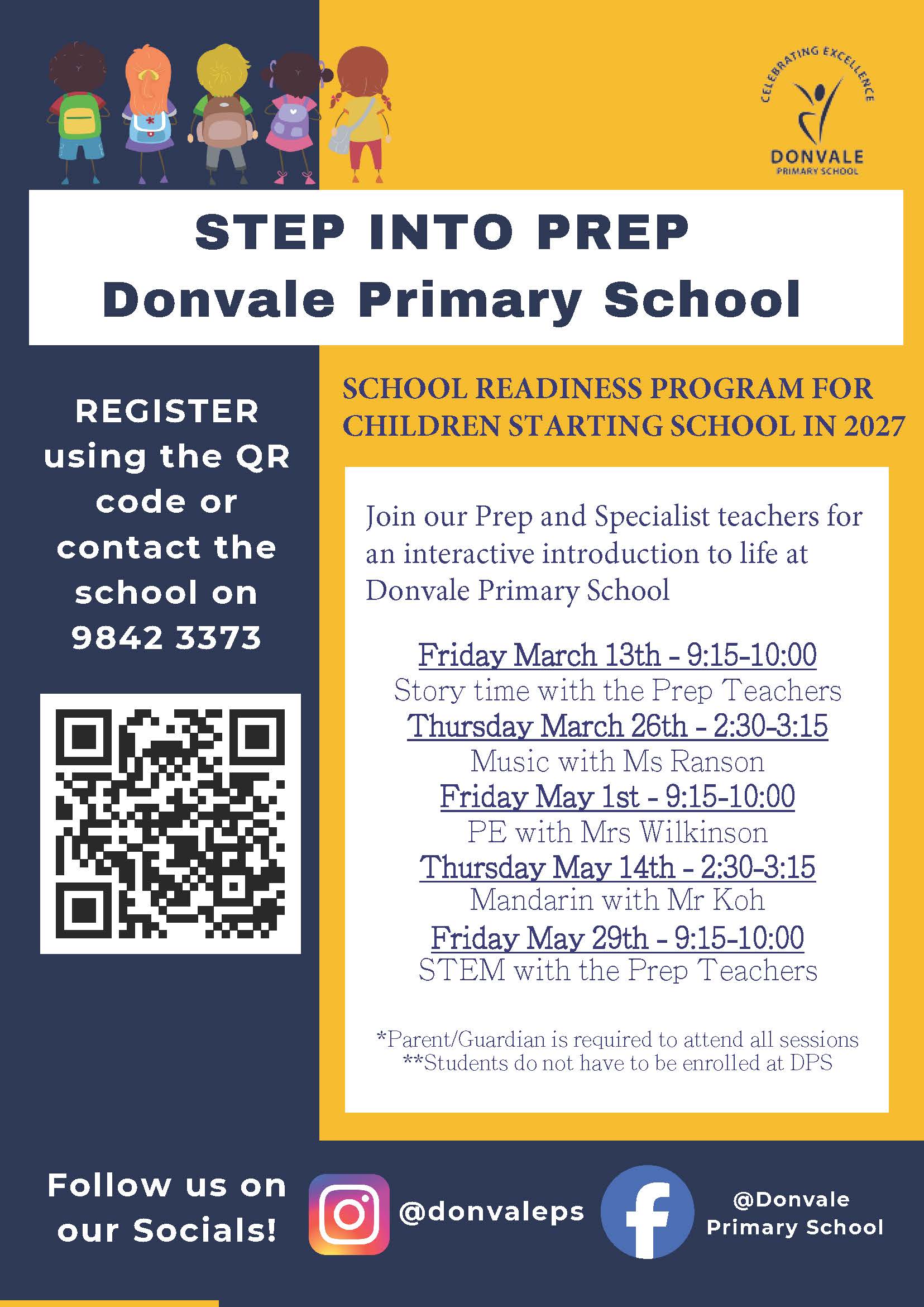 Children do not need to be enrolled at Donvale Primary School to attend Step Into Prep.